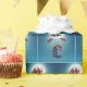 A blue gift box with red and white parachutes descends through a starry night sky, while the full moon glows brightly in the background.