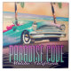Paradise Cove , Malibu, California USA vintage style travel poster of an all American car on the beach during a sunset.