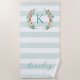 This fun trendy design features a mint and white striped background with colourful floral wreath. Personalise the design with your name and monogram or other text. Use the design tools to choose any background colour, edit the text fonts and colours or upload your own photos to create a unique custom printed beach towel for kids.
