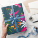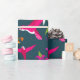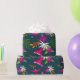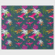Hummingbirds Tropical Rainforest Colourful Print Wrapping Paper. Pink and purple Hummingbirds flying about on a tropical background. Palms and flowers. Dark teal blue background.