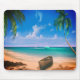 Get whisked away to paradise with this vibrant-colour mouse pad. This product features an image of a tropical beach with gorgeous brown sand, cool palm trees, relaxing blue ocean waves, and a beautifully painted canoe sitting on the shore.