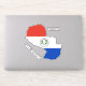 Paraguay Flag Map Outline Sticker in the outline of the Paraguay map. The map is infused with the pattern and the colours from the Paraguay national flag. Small stickers with the country name are also included. Paraguay map sticker is the perfect sticky gift that can be placed anywhere your heart desire. © CountriesOfTheWorld