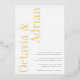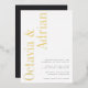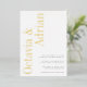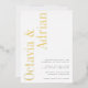 A modern and minimal typography based wedding invitation featuring your names in gold foil serif lettering, running vertically up the left side of the card. Personalise with your wedding details aligned at the lower right.