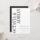 A modern and minimal typography based wedding invitation featuring your names in classic soft black serif lettering, running vertically up the left side of the card. Personalise with your wedding details aligned at the lower right.