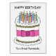 A simple illustration of a large white birthday cake covered in lit candles, and with a pink bow tied around it. The words 'Happy Birthday to a Great Paramedic' accompany the image, which has a white background.