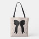 All-Over-Print. The tote is Parchment layered with Black Dots. The Parchment Centre is highlighted with a large Black Ribbon. Monogram is in the colour Parchment on the Black Ribbon.