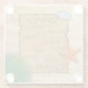 Old parchment paper with palm leaf, stone and starfish on beach sand background.