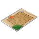 Old parchment paper with palm leaf, stone and starfish on beach sand background.