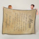 This vintage, antique design blanket features a parchment paper design background in a faded, crumpled, brown appearance. A scripted letter or note is printed across the blanket. A sample recipient "Mum" is printed at the top with a letter or message in the centre. The font resembles an old fashioned book or letter.