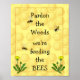 Pardon weeds Feeding Bees Fun Garden Quote Poster