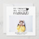 Include your child in your surprise wedding announcement with this fun and informal card. The front of the card is easily customisable with one of your favourite photos of your son or daughter, with a family picture, or with a photograph of your choice, and features the caption "My parents are getting married" in modern black hand-written fonts decorated with a lovely heart. The back of the card features a second customisable picture and is personalizable with your own wedding announcement.