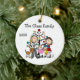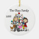 A cute, fun ceramic ornament featuring a stick figure couple, young boy, baby girl, and two dogs.