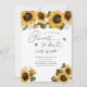 Rustic bee baby shower invitation template card featuring watercolor illustration of yellow sunflowers and baby's breath with bumblebees. Perfect for a summer baby shower. The text says "let's shower the Parents to bee."
