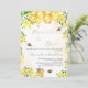 A stylish white and golden watercolored background. Decorated with bumble bees, melting honey and honeycomb with yellow florals, flowers and a honey jar. With the text: Parents to Bee written with a modern hand lettered style script. Personalise and add the name of the parents to bee.