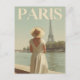 This elegant vintage poster captures a romantic Parisian moment: a woman in a flowing 1950s dress stands gracefully by the Seine River, gazing towards the Eiffel Tower. The scene is bathed in warm, nostalgic tones, with soft reflections on the water and classic Parisian architecture in the background. The artwork evokes the timeless charm of mid-century Paris, combining vintage fashion with iconic landmarks. A perfect piece for lovers of retro elegance, Paris, and classic travel art.