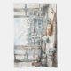 This Paris apartment kitchen watercolor features a light-filled interior with a simple countertop, ceramic teapot and cup, fresh baguette on a cutting board, and a softly folded striped tea towel. Through tall windows, classic Parisian rooftops create an elegant backdrop, while muted neutrals and soft blues give the scene a calm, timeless feel perfect for kitchen décor and tea towels.