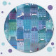 A blue semi abstract townscape painting inspired by the atmosphere of Paris in spring. Original art by Nic Squirrell.