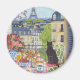 Add a little Parisian charm to your kitchen with this delightful fridge magnet featuring a cozy balcony breakfast scene. A black cat sits peacefully while gazing toward the Eiffel Tower above the rooftops of Paris, surrounded by croissants, strawberries, coffee, and blooming flowers. This charming illustration brings the atmosphere of a relaxing Paris morning to your refrigerator, office board, or magnetic surface. A lovely small gift for cat lovers, Paris fans, and anyone who enjoys French-inspired décor. Original artwork by Caroline Bonne Müller.