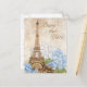 A lovely image of the Eiffel Tower from the Paris Exposition in 1889 along with beautiful blue and white vintage hydrangeas on a textured background with a faint hint of floral damask make a beautiful romantic design for this wedding or other occasion Save the Date postcard. The back is ready to customise with your own information. Matching items and other vintage Paris designs are available in my Zazzle store.