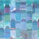 A blue semi abstract townscape painting inspired by the atmosphere of Paris in spring.