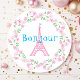 Features pretty pink flowers and the saying "Bonjour" (Hello) in French. Text can be customised. Great for sealing envelopes or party favour bags! Matching invitations, paper plates, and napkins are available in my store. Design©2019 Rosalind Moore, Cherry Lane Designs.