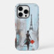 Dramatic painting of the dream of going to Paris. The broad brushstrokes add the drama to this painting of a woman in black carrying a red bag and walking towards the Eiffel Tower. Add your name in a graceful script typeface for a lovely case!