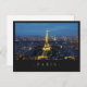 Panoramic view over Paris, the "City of Light", with the majestic Eiffel Tower and skyline of La Defence business district in the distance, during the "blue hour" after sunset.