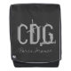 Drawstring backpack features CDG - Airport code for Charles de Gaulle Airport, Paris, France in modern urban font