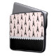 Paris chic laptop sleeve features an eiffel tower pattern on pink background topped with a row of ivory pearls.