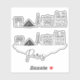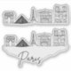 This sticker sheet features a silhouette style line art illustration of the skyline of Paris.