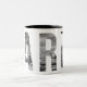 Stylish ceramic coffee mug with the word PARIS printed in black and white photo.