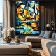 Transform your space with the romantic elegance of Paris captured in this captivating cubist illustration. Featuring the iconic Eiffel Tower and the Seine, the geometric forms and vibrant colours evoke an artistic stained-glass effect. Perfect for modern interiors, lovers of contemporary art, and anyone who treasures the charm and sophistication of the City of Lights.