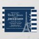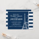 Paris; Dark Midnight Blue Horizontal Stripes Invitation