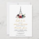 Paris eifel burgundy floral bouquet winter bridal invitation