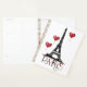 This beautiful Eiffel Tower design features the Eiffel tower on a with a gothic red and grey word "Paris" and floating red heart balloons.