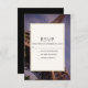 Wedding RSVP card with a photograph of the famous European landmark - the Eiffel Tower taken at an upward facing angle giving it an interesting perspective. Accentuating the metal lattice work.