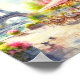 This postcard features a watercolor portrait of the Eiffel Tower in Paris, France.