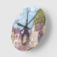 This clock with fabric shape numbers, or font, has my art by Kristie Hubler, Paris, Eiffel Tower, France, & Paris Las Vegas indoor shopping boulevard boutique facades inspired painting with fabric font from my site http://fabricatedframes.com that I created. Perfect for any kitchen or home decor.