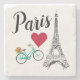 Paris Eiffel Tower Love Illustration Stone Coaster