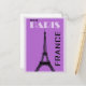 Anyone would love to receive this French vintage travel poster postcard featuring a retro purple illustration of the Eiffel Tower in Paris, France!