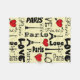 Paris text design for Valentine's Day with red heart shapes, Eiffel Tower and street lamps decoration on yellow background