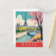 Paris France Eiffel Tower Retro Travel Floral Postcard