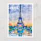 Paris France Famous Travel Place Watercolor Sketch Postcard