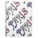 Paris France French Flag Colours Typography Notebook