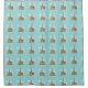 Cute aqua home decor shower curtain featuring illustrative images of Paris France including the Eiffel Tower..