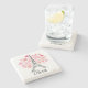 The coasters are gorgeous, a quality feel and heavy weight. They look like a precious archeological find. A rustic stone juxtaposed with a modern floral black and white print. I like the way the print goes slightly imperfect on the cut stone edges giving them a kind-of natural beauty.