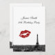 Customisable Invitations and accessories with a black and white view of the iconic Paris, France skyline featuring the Eiffel Tower and a red lipstick kiss.