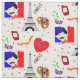 Paris France Themed Cute Fun Red White Blue Design Fabric