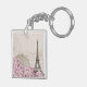 Paris France Travel Design with Eiffel Pink Roses Key Ring
