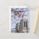 Paris France travel photo postcard. Travel photography showing Notre Dame cathedral in Paris in springtime, with cherry blossoms.